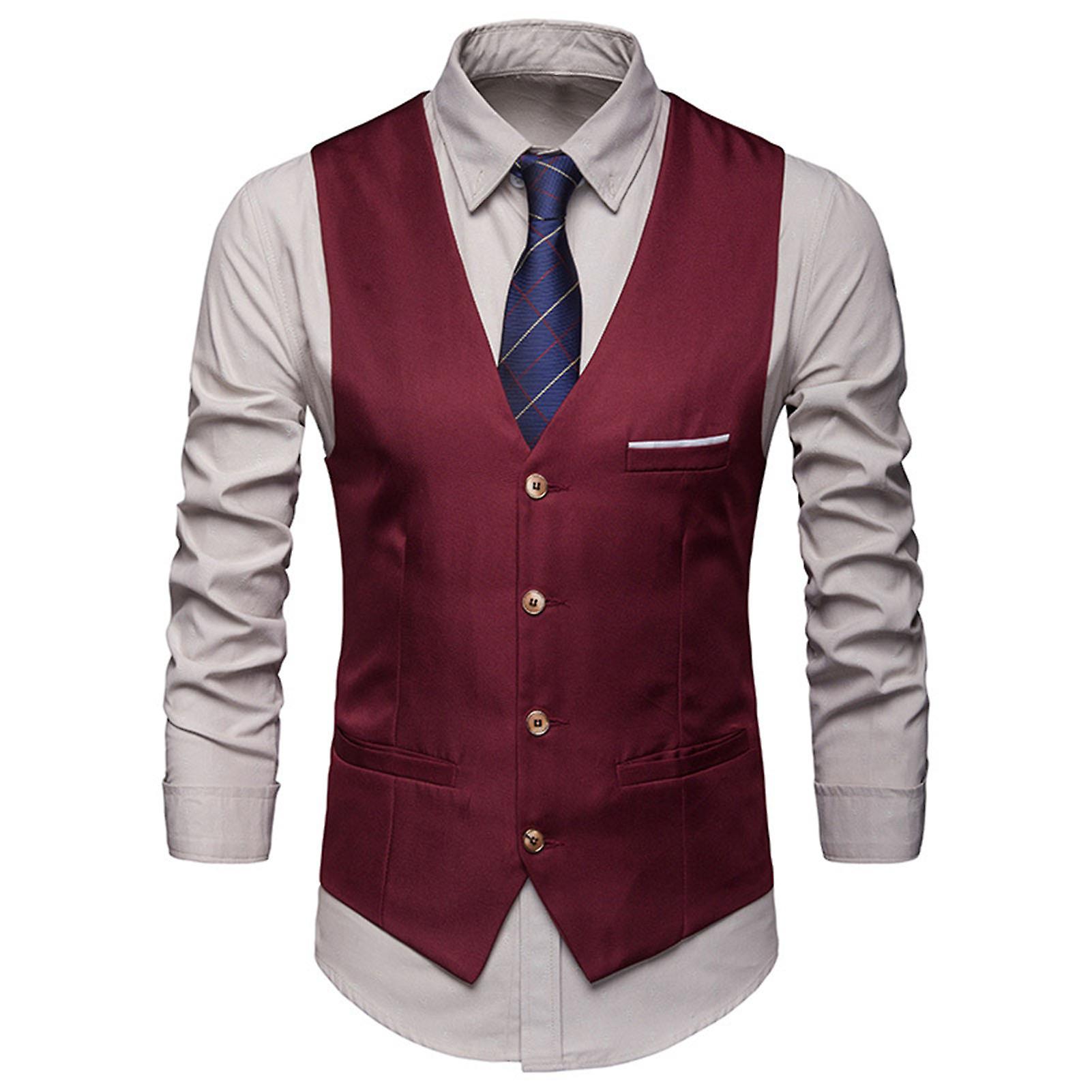 Fianao Pockets Removable White Strips Suit Vest Classic Solid Color Men Business Waistcoat Workwear