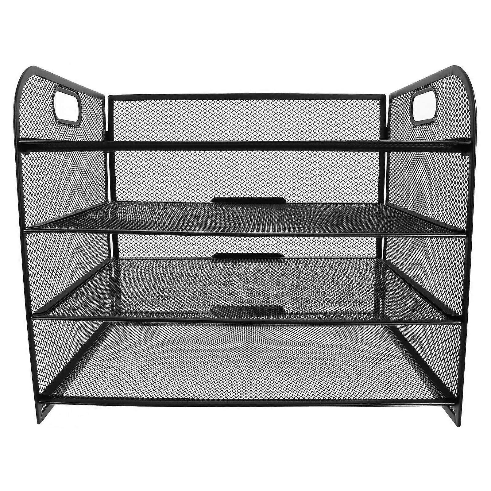The detachable four-tier mesh desktop file organizer with handle is designed for simplicity and elegance. Its easy installation process includes detailed instructions and tools, making it ideal for offices, homes, and schools. The sleek design not only provides ample storage space but also adds a touch of sophistication to your workspace. Features -Color:Black -Material: -Size:32.80X27.60X24.70cm/12.89X10.85X9.71in -The package includes comprehensive instructions and all necessary tools, ensuring a smooth and straightforward setup process for any workspace environment. -With its contemporary and sophisticated design, this organizer enhances the aesthetic appeal of your office, home, or school setting. -Ergonomically designed handles allow for effortless mobility, making it convenient to transport your documents from one place to another. -Constructed from robust metal mesh, this organizer is designed to endure daily wear and tear, promising durability. -Featuring a four-tier structure, it offers generous storage space for your essential files, magazines, and documents, keeping your workspace organized. Package list: 1 x Tiered Paper Letter Tray
