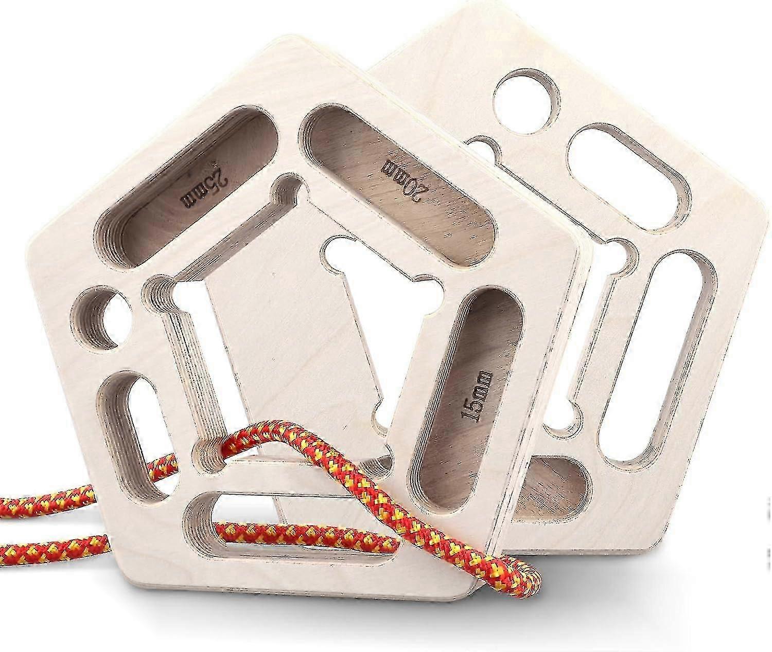 Multi-functional Design: Our 2-Pack portable hangboard is made of high-quality birch wood. It features 4 deep pockets (measured at 10, 15, 20, and 25 mm) and various types of finger holes (1-finger, 2-finger, 3 or 4-finger). Now, climbers, boulderers, fitness enthusiasts, leisure athletes, and kids of all ages can start their training!Full Body & Fun Training: Perfect for bouldering, rock climbing, personal training, gymnastics, and rehabilitation exercises. In addition to regular hanging and pull-up exercises, it can also serve as a resistance trainer and suspension trainer, enhancing grip strength, body tension, core strength, and endurance. Make mundane hangboard training fun with this pentagonal wooden climbing hangboard.Portable, Suitable for Indoor/Outdoor Use: Weighing only 300 grams per board, it is lightweight and portable. No need to worry about tedious installation steps like drilling holes or screwing. The included ropes can secure it to various indoor and outdoor locations, allowing for effective climbing training anytime, anywhere.Comfortable Feel, Strong Grip: All edges of the wooden fingerboard are rounded, and all surfaces are smoothly polished, allowing for long-term hanging without causing discomfort to the fingers. Each finger hole retains the natural wood surface without any coating, ensuring excellent grip performance.Suitable for Beginners and Advanced Climbers: Designed for both novice and advanced climbers, this climbing hold facilitates dead hangs, bent-arm hangs, offset pull-ups, standard pulls, offset pulls, one-arm pull-ups, L-hangs, and front lever exercises.
