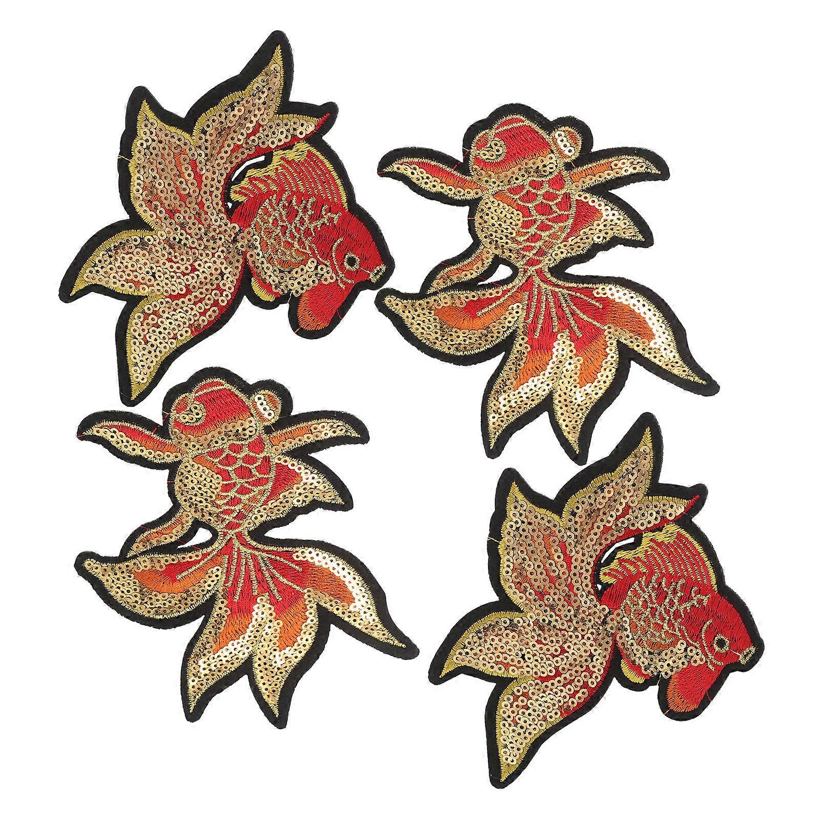 Fish Patch Koi Fish Embroidered Sequin Applique Iron on Patch 2Pairs