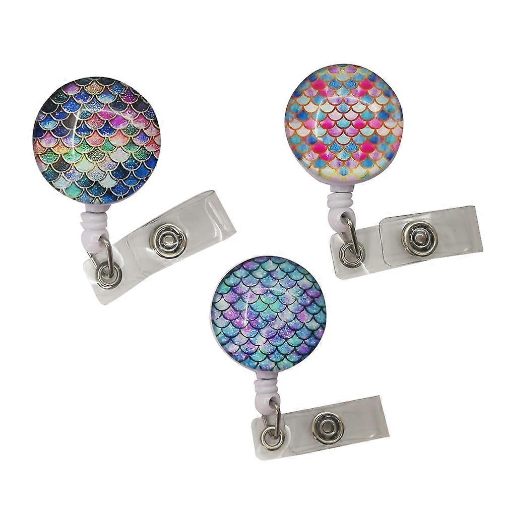 Fish Scale Easy Pull Retractable Badge Clip Designed for 3Pcs with Lobster Buckle