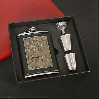 Flagon 304 Stainless Steel Leather Hip Flask, 8 Oz Wine Jug Whiskey Wine Pot Men Outdoor Travel Flagon-Black