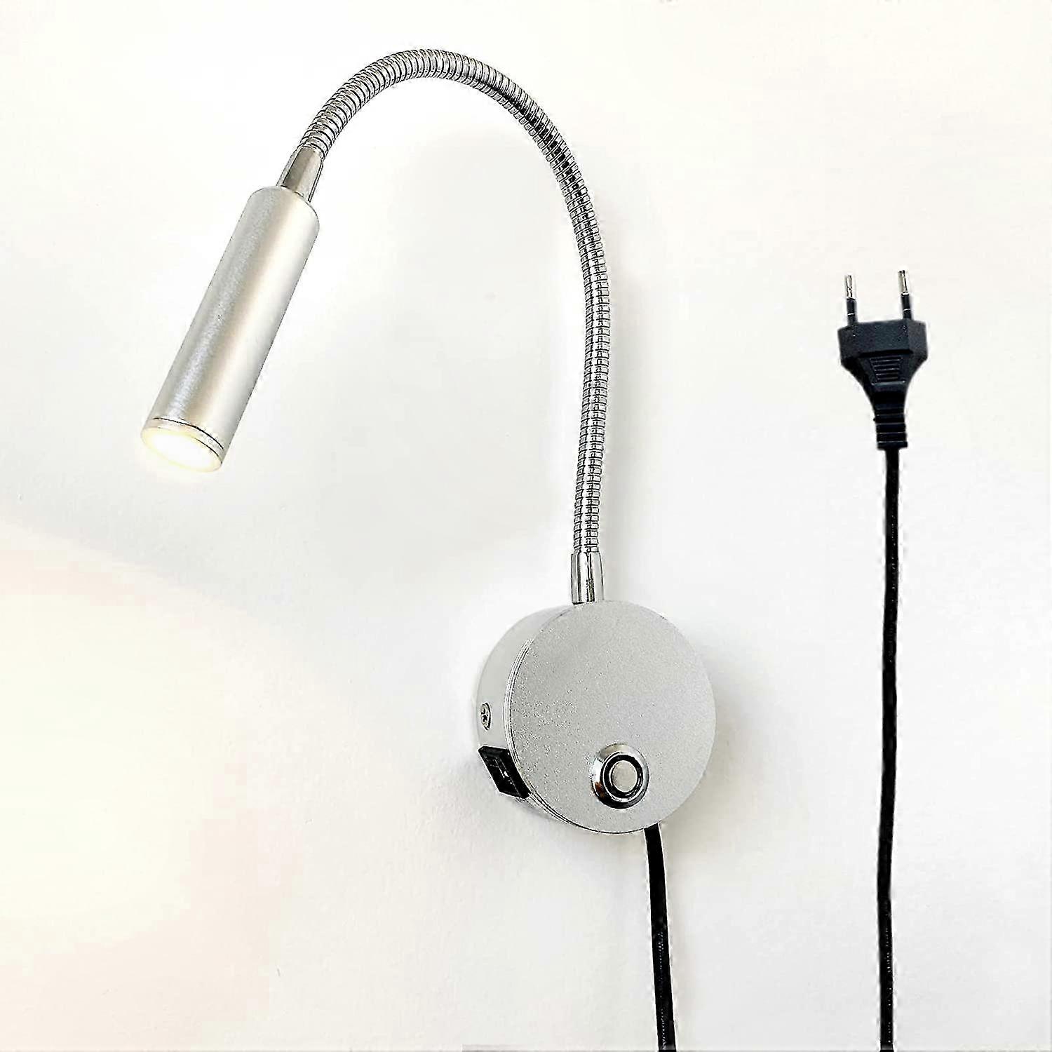 Flexible USB Reading Light with Touch Control and Gooseneck Design for Bedside or Wall Mount, 3W LED Dimmable Lamp with Plug