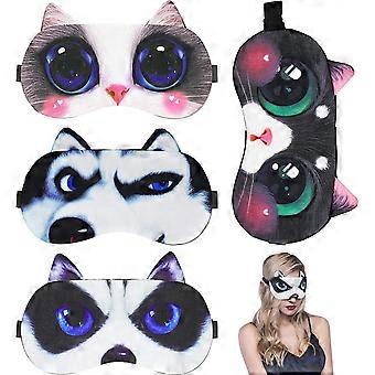 Fluffy Sleep Masks - Soft Blindfold Set (Gray/White/Black, 4pcs)