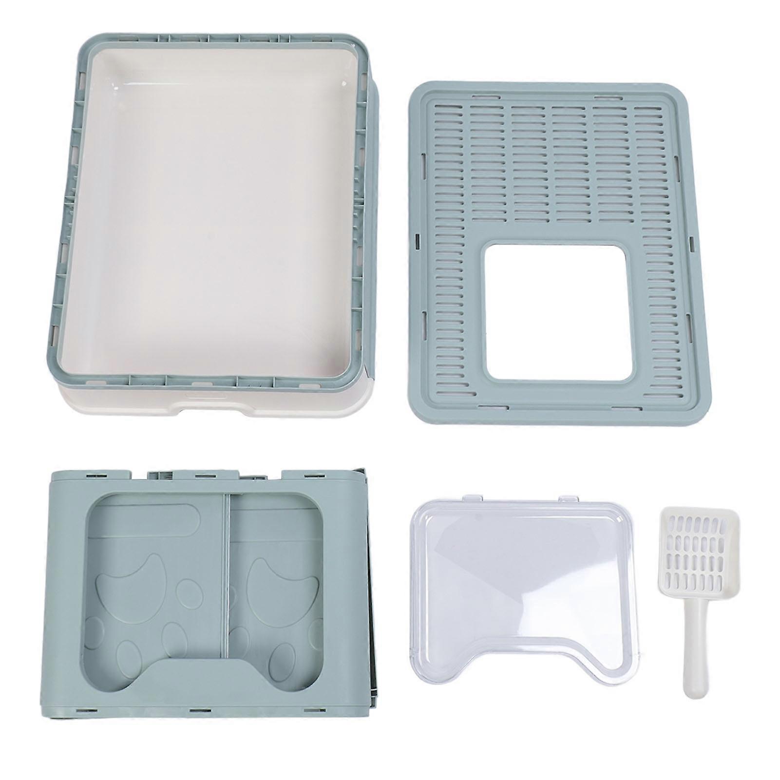 Foldable Cat Litter Box Multipurpose Semi Enclosed Odor Control Easy Clean Large Space Kitty Litter Box with Lid for Indoor Blue