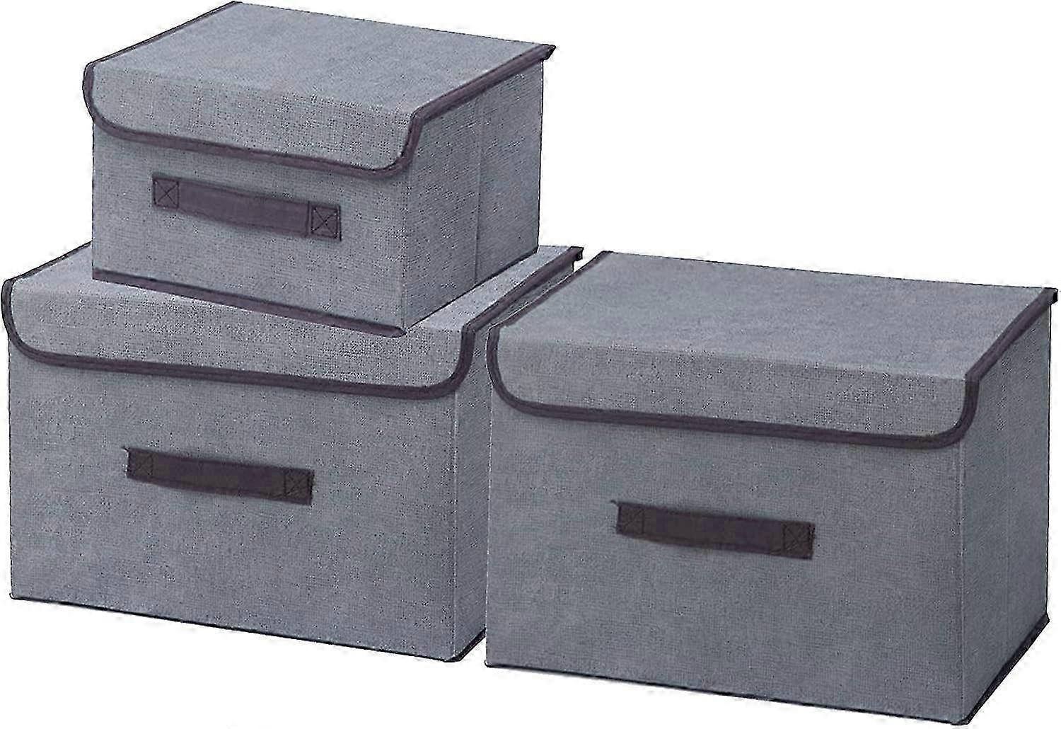 Foldable Storage Box Set with Lids - Set of 3 Gray Baskets for Clothes, Toys, Books & Cosmetics - Organize Your Space