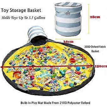 Foldable Toy Storage Bag with Play Mat - Quick Cleanup Portable Drawstring Bag