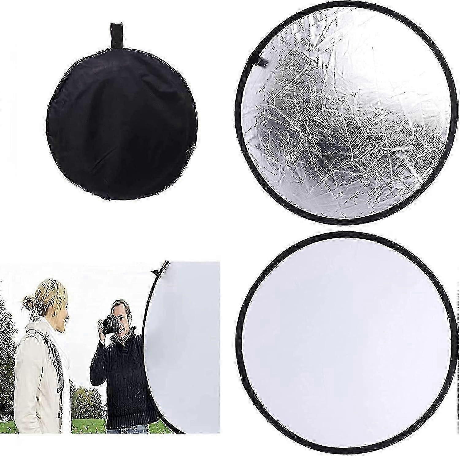 Foldable Two-In-One Photographic Light Reflector - 12-Inch Camera Diffuser Plate For Selfie Silver/White Background_cp -NEW