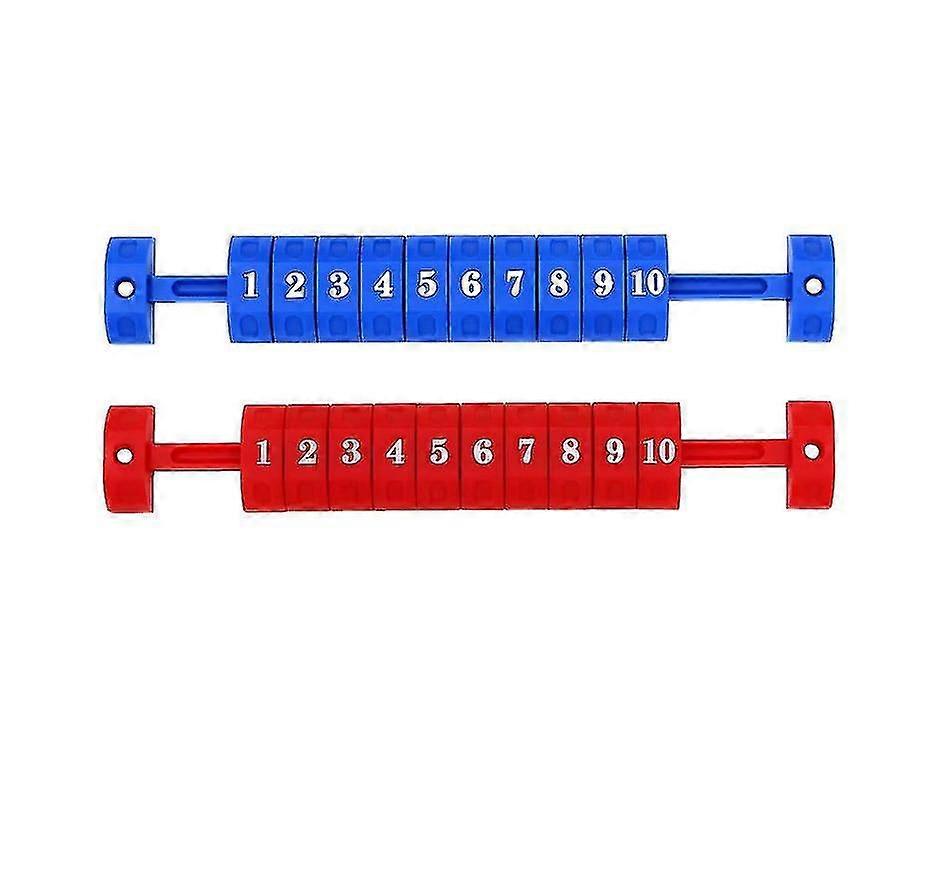 Foosball Scoring Counters, Table Football Score Counters Markers Foosball Scoring Units Foosball Scoreboard replacement for Standard Football HIGH QUALITY PLASTIC MATERIAL: Table football table counters are made of high quality plastic, safe, sturdy, lightweight and durable. EASY TO USE: Easy to install and unload.Soccer Table Game Scoring Unit Score Goal Counter is easy to attach with four screws (screws are not included).The rod holds plastic wedges from 1-10 ERGONOMICAL DESIGN: Scoring keys ergonomically designed.Ergonomically designed scoring buttons and user-friendly. Color: blue+red Size: 267mm*40mm Quantity delivered: 2 pieces Warm prompt: 1.As different measuring methods,it will occur 1-3 cm deviation about the items,please ensure that it is okay for you before ordering. 2. Because of different monitors and lamplight, the picture may not reflect the actual color of the item, really thank you for your kind understanding 3. Only the above package contents, excluding other products.