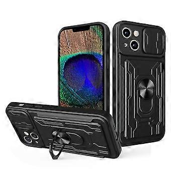 For iPhone 15 Sliding Camshield TPU+PC Mobile Phone Case with Card Slot