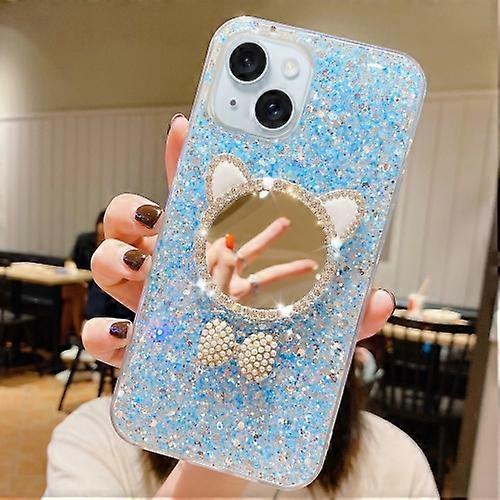 For iPhone 15 Starry Sequin Diamond Cat Ears Mirror Epoxy TPU Phone Case