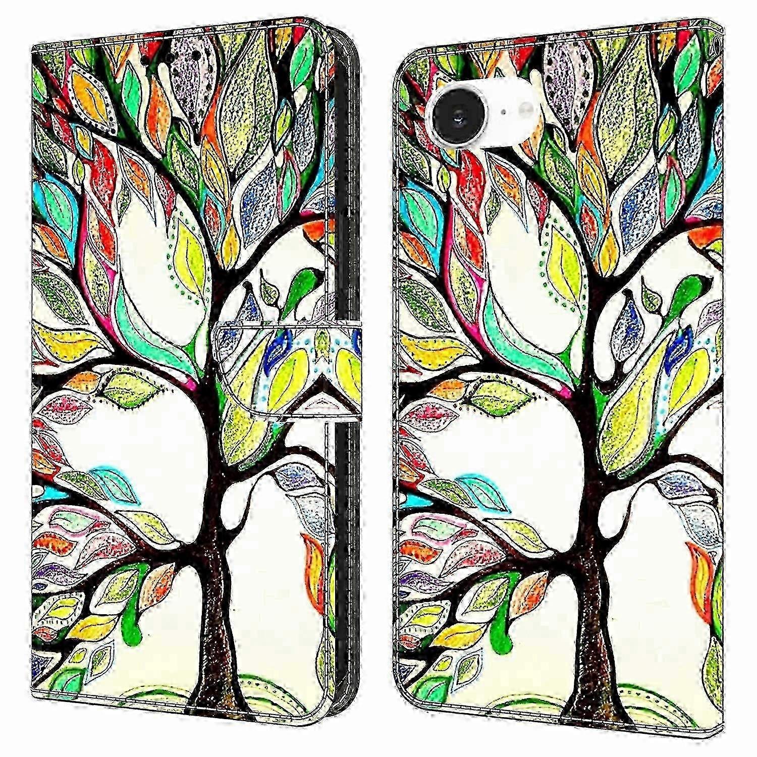 For Iphone 16e Case With Card Slot Pattern Printed Tpu+pu Leather Flip Phone Cover - Tree