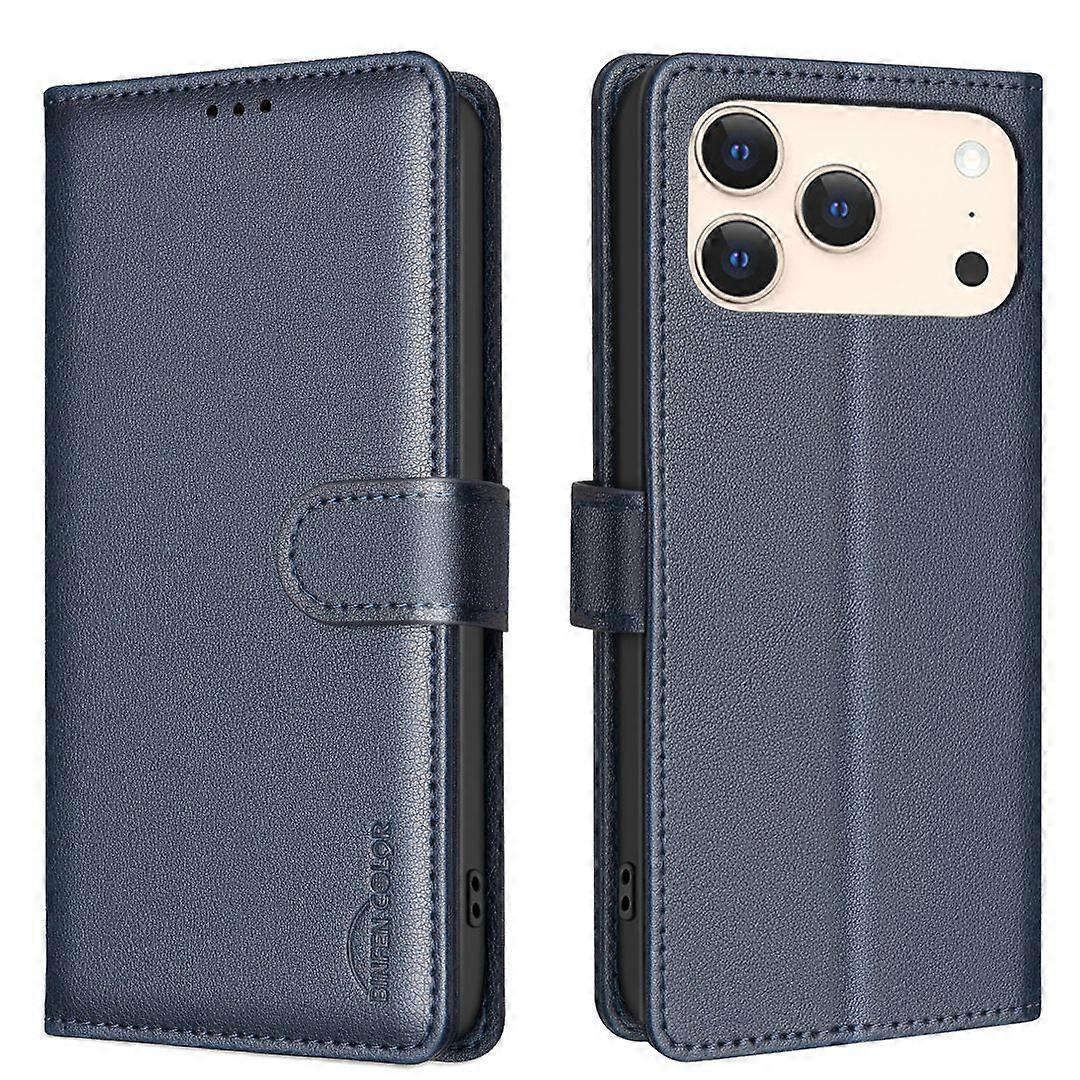 For iPhone 17 Pro Leather Case BINFEN COLOR BF32 Wallet RFID Blocking Phone Cover - Blue