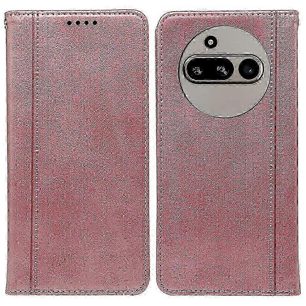 For Nothing Phone (3a) Case Hidden Magnetic Closure Calf Texture Leather Phone Cover - Rose Gold