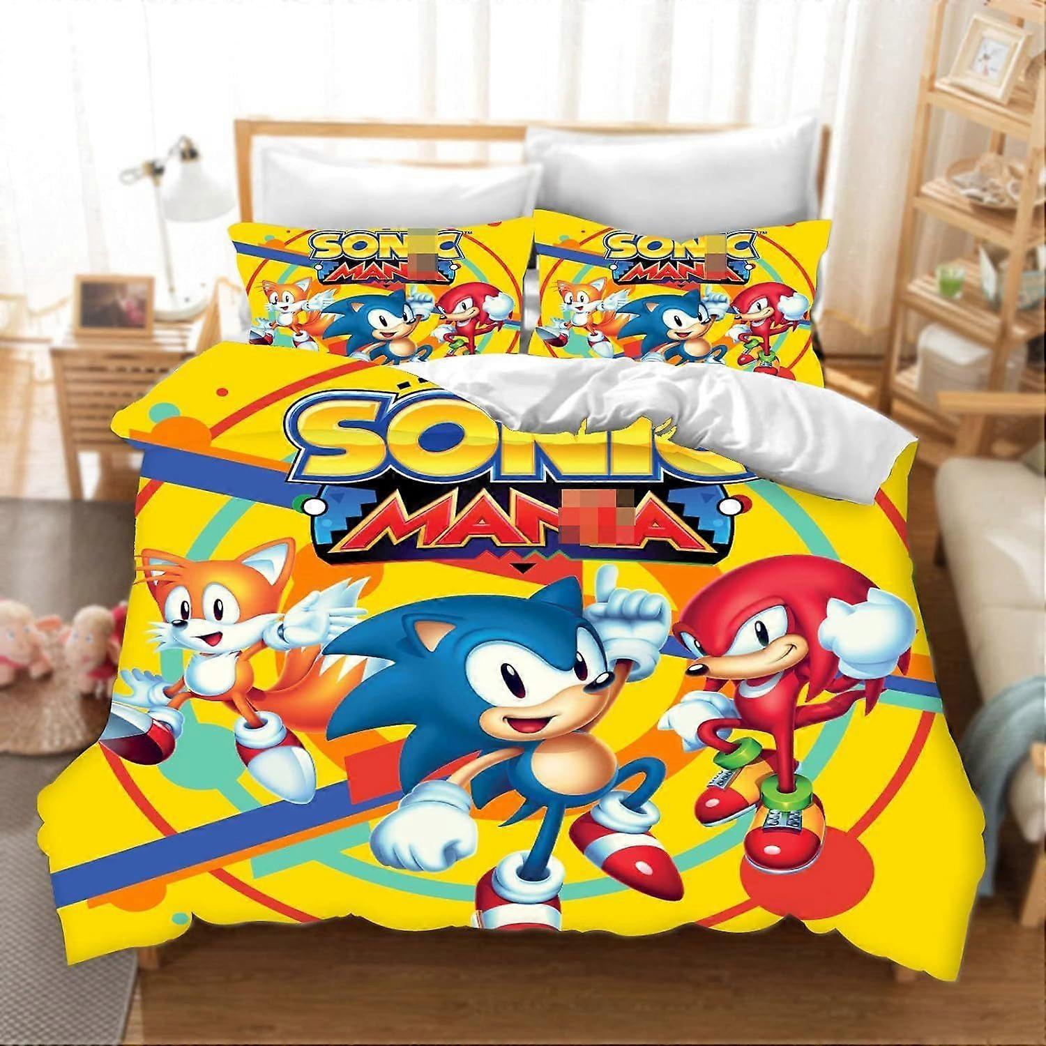 g52 Sonic Bed Linen 135 x 200 cm Anime Duvet Cover Set Children's Microfibre Bed Linen with Zip and Pillowcase f52