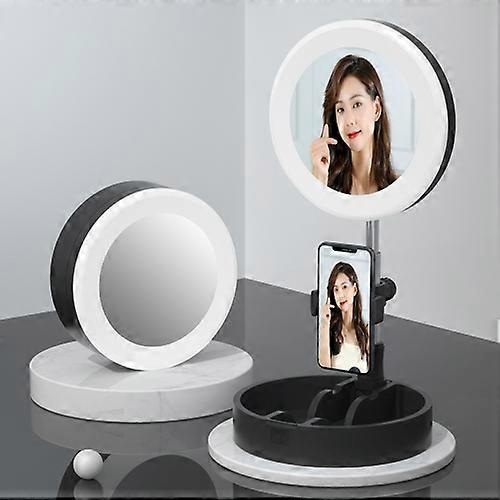 1. Power supply mode: USB 2. Number of telescopic sections: 4 sections 3. Material: ABS+aluminum alloy+glass 4. Color temperature of lamp beads: 2700-6000K 5. Number of lamp beads: 72 LED lamp beads 6. Light color: white light, warm light, warm white light 7. Working height: 31-58cm 8. Working voltage: 5V 9. Lamp power: 6-12W 10. Lighting gear: 10 gears 11. Open and use, easy to operate 12. Foldable storage design, easy to carry 13. The lamp ring can be adjusted at 225 degrees to meet the needs of supplementary light 14. Using non-slip silicone design, more stable 15. The light is soft and not dazzling, and the makeup and skin care are more comprehensive 16. Size: 17x6cm 17. Weight: 365g