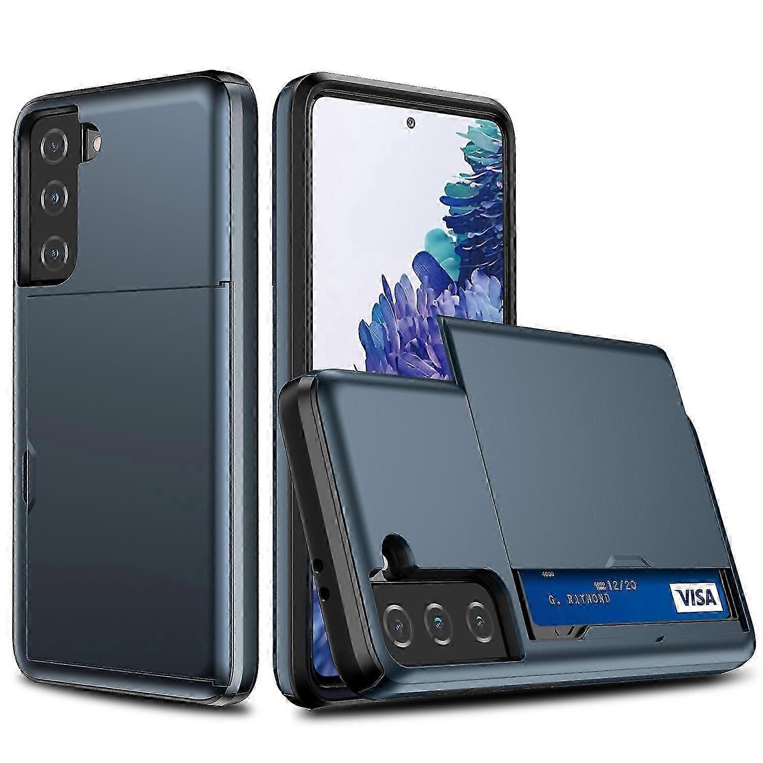 Galaxy S21 4G/5G Anti-Scratch Sliding Card Holder Hybrid PC TPU Protective Phone Case Cover