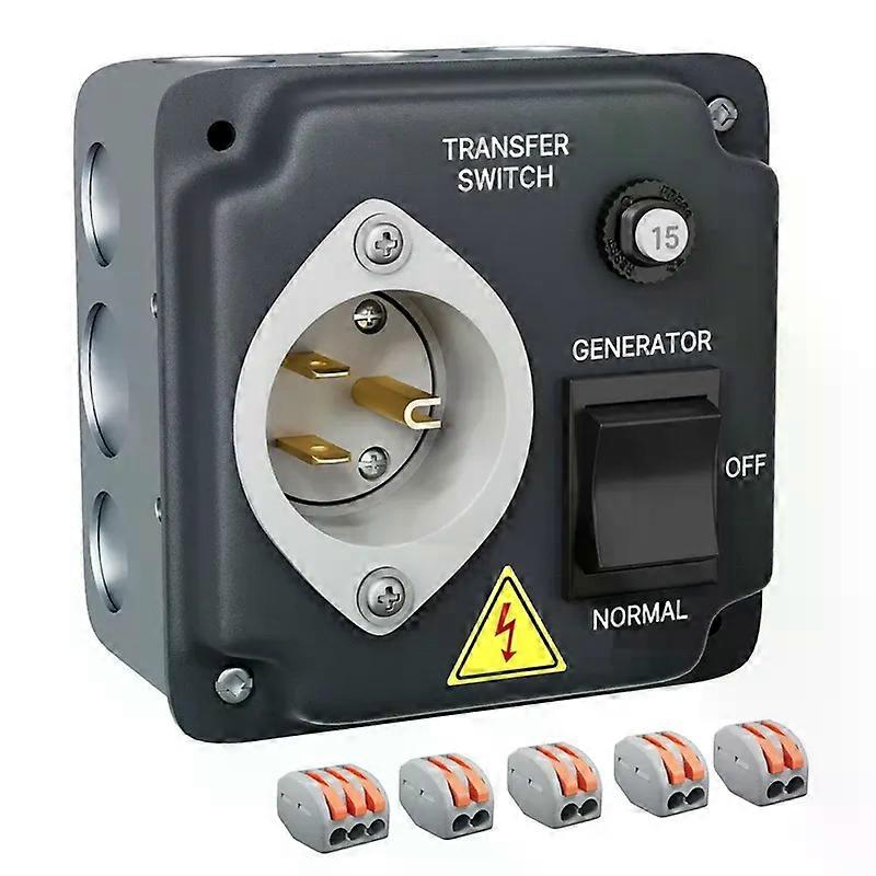 Generator Transfer Switch Weatherproof Transfer Switch Pre-Wired With Circuit Breaker For RV 15A 125V US Plug Easy To Use