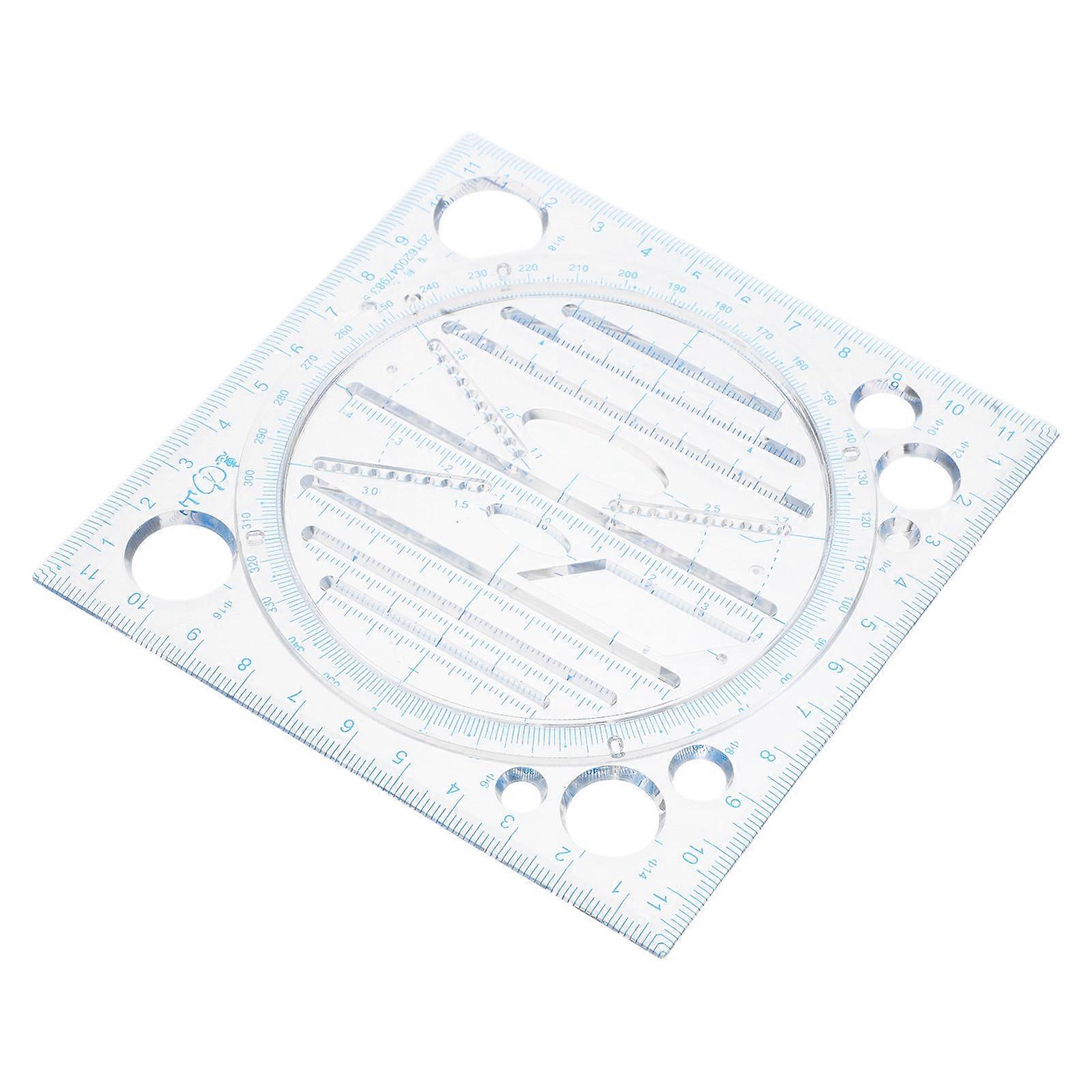 This multifunctional drawing tool is great for anyone needing precise measurements and detailed drawings. The plastic circle stencil and geometric shapes make it easy to create accurate designs, while the construction ensures it can withstand regular use. Ideal for school, office, or engineering projects, this tool meets all your drawing and measuring needs. Features - Color: Sky-blue -Material:Plastic -Size:12.00X12.00X0.20cm/4.72X4.72X0.08in -Professional precision: ideal for engineering and architectural tasks, this ruler ensures exact measurements, supporting sturdy and detailed designs. -Multipurpose functionality: serves as a compass, ruler, and stencil, offering versatility for various drawing and measuring needs. - build: constructed from strong plastic, this tool maintains its shape and functionality even with frequent use. -Userfriendly design: ergonomic features provide a comfortable grip, reducing strain during extended drawing activities. -Efficient markings: clear and precise scale indicators allow for quick and accurate data interpretation, minimizing errors in complex projects. Package list: 1 x ruler