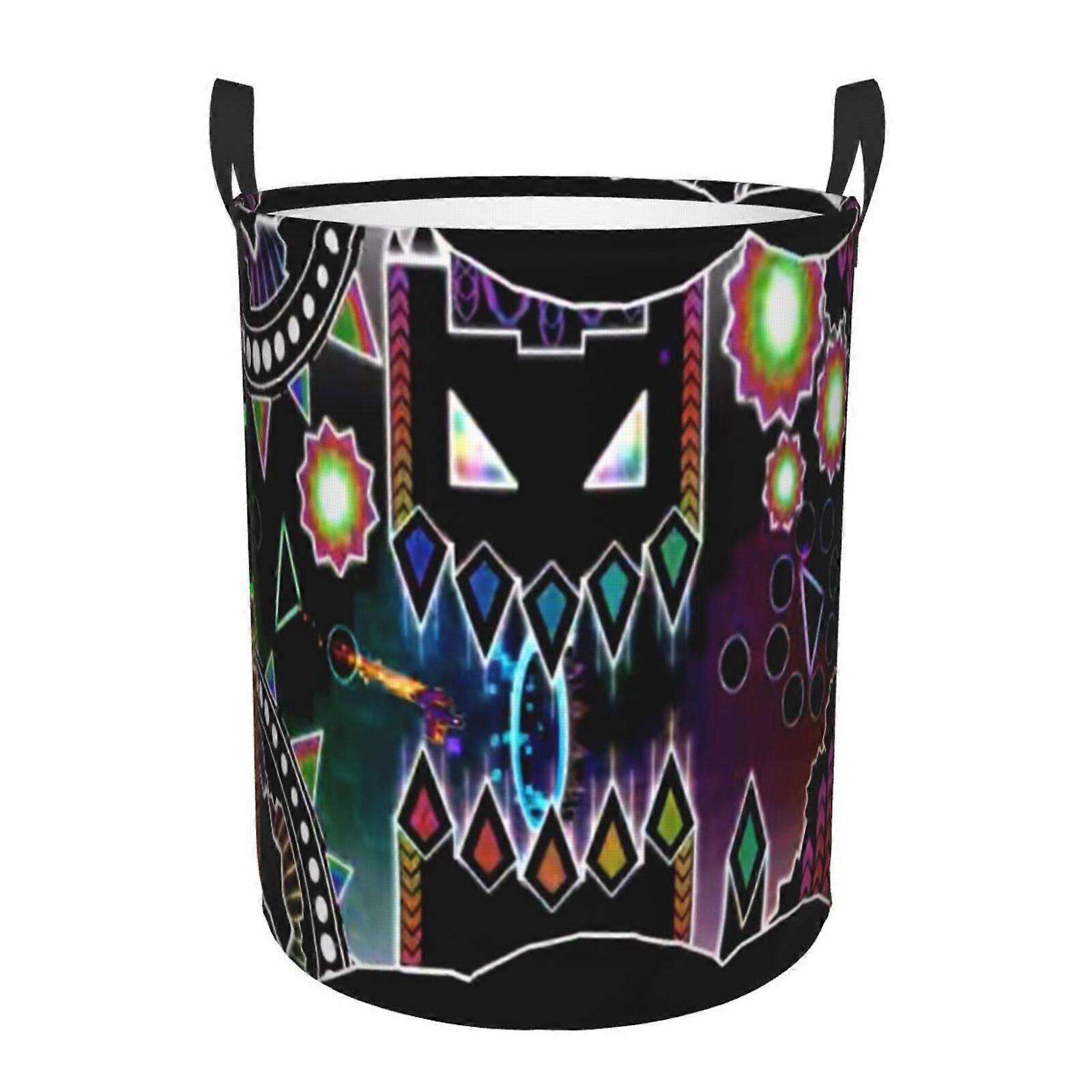Geometry Dash 3d Graphic Flame Laundry Basket Fire Flame Clothes Hamper Storage With Handle-SYS29430