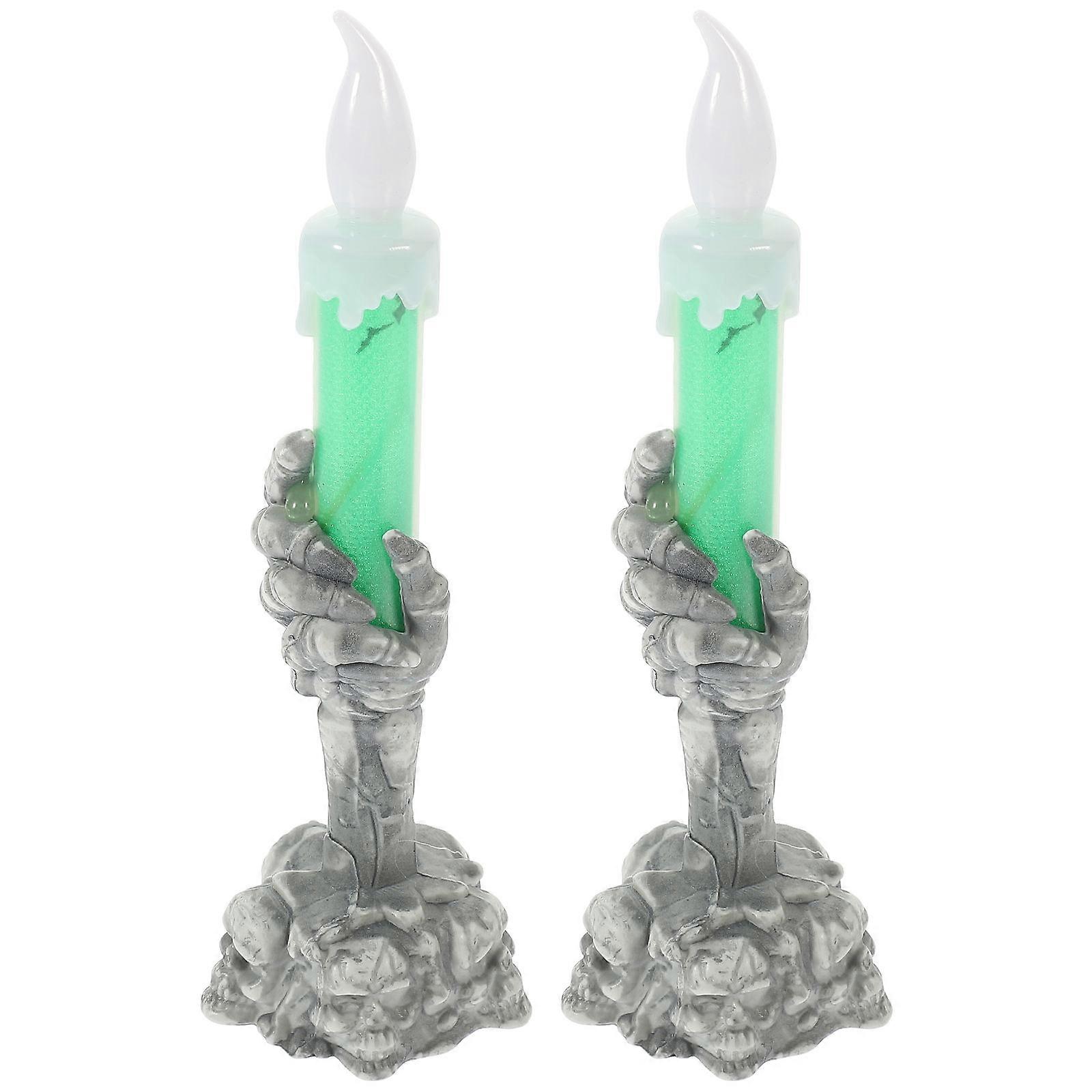 Ghost Hand Halloween Candle Lamp for Decorative Use 2Pcs Green LED Lights