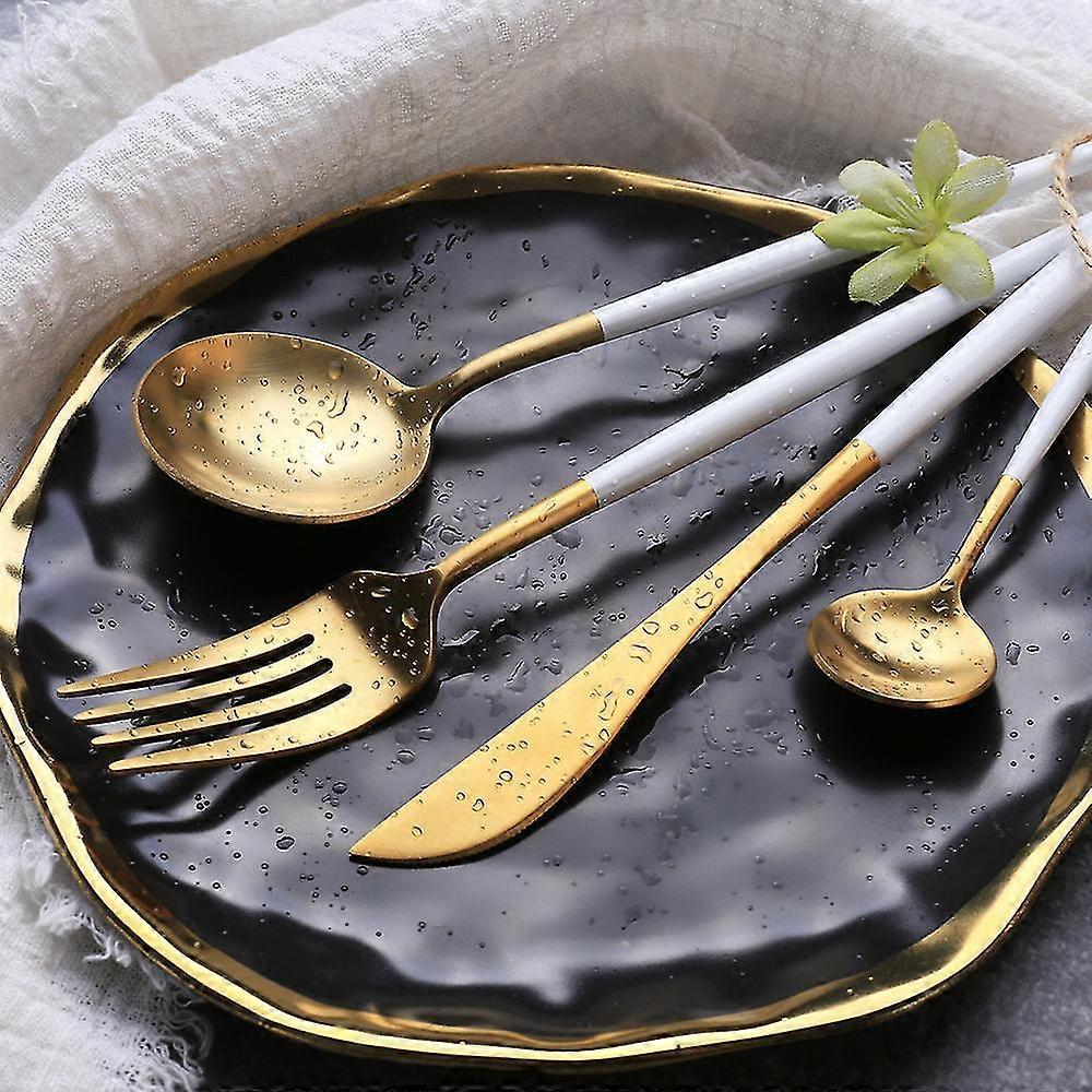 Ghyt 4pcs Gold Plastic Silverware, White And Gold Plastic Cutlery, Gold Plastic Forks And Spoons, Gold Plastic Flatware Include 1forks, 1spoons, 1 Kni