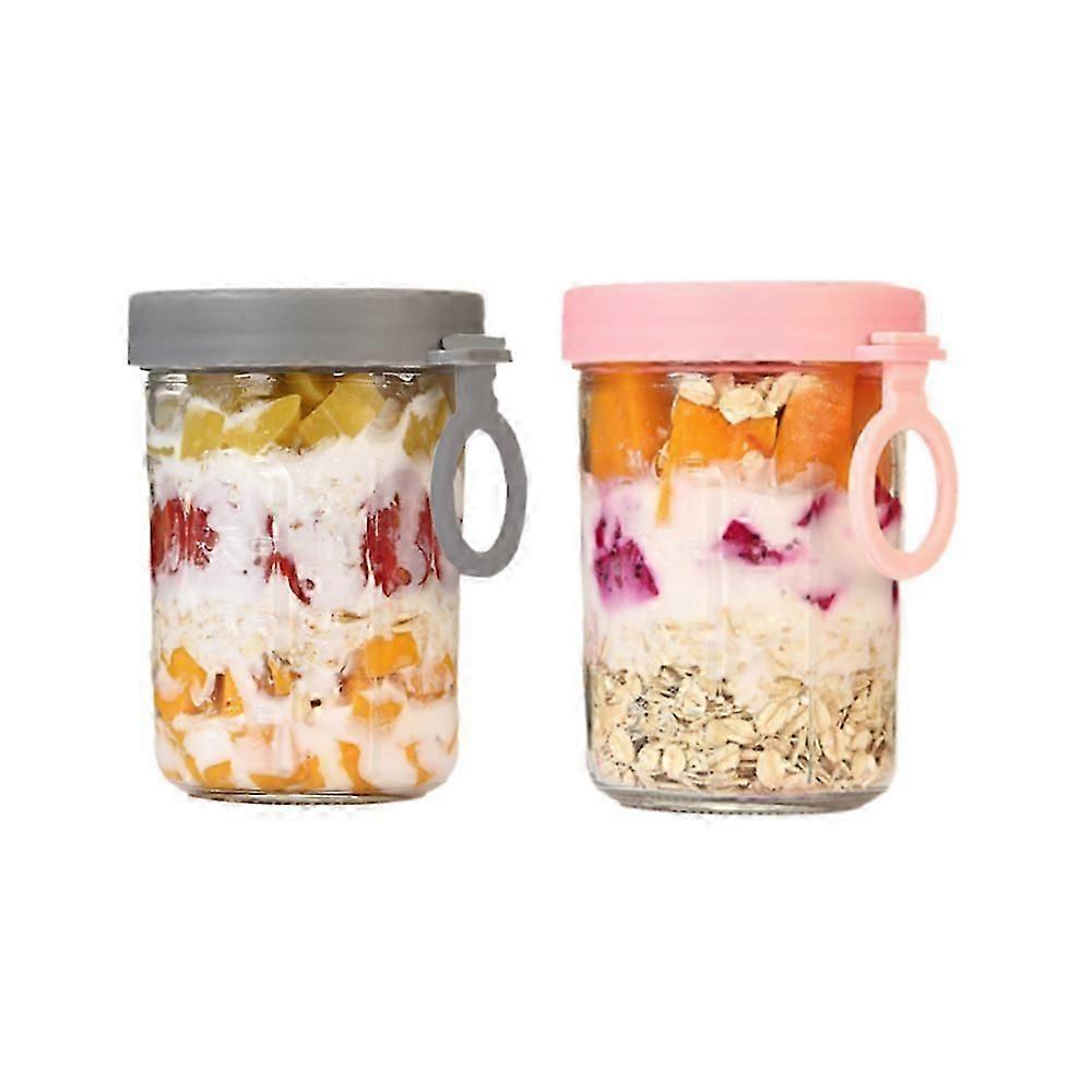 Glass jar with lid and folding spoon for overnight oats and yogurt