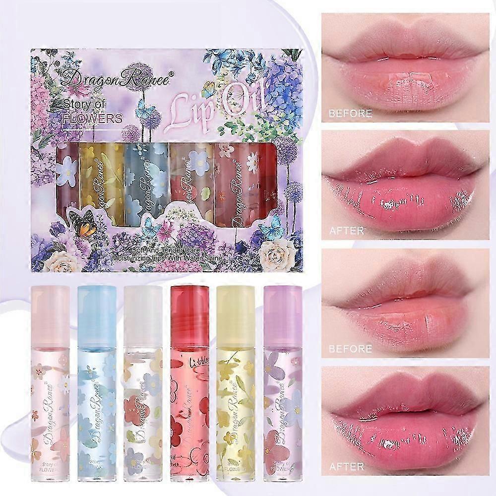 Glitter Lip Gloss, Colourless Roll On Lip Glow Oil, Transparent, 6 Sticks Moisturising Lip Oil, Lip Gloss for Long-Lasting Glossy Nourishing Lips