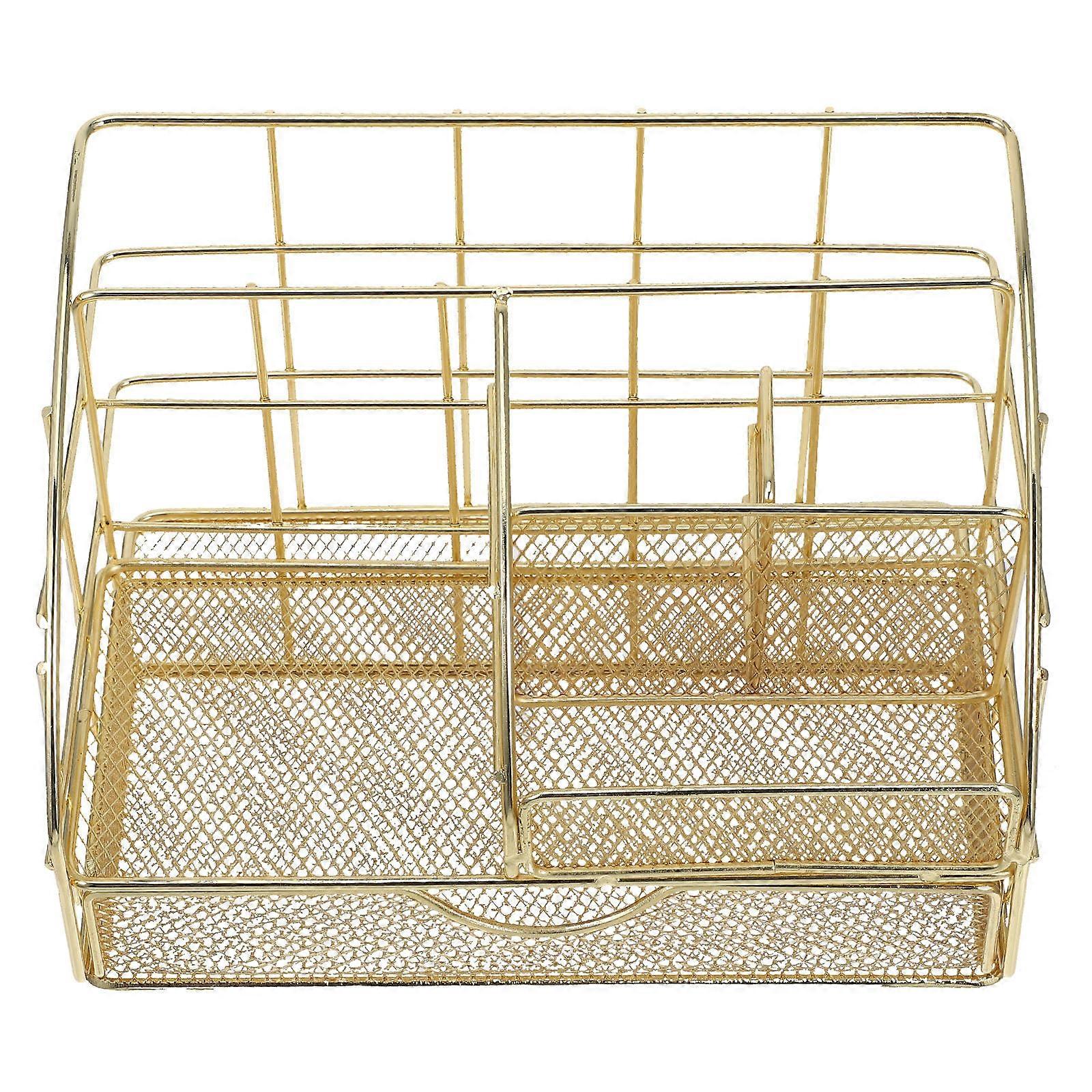 Golden Iron File Storage Rack for Desktop Book Organizer