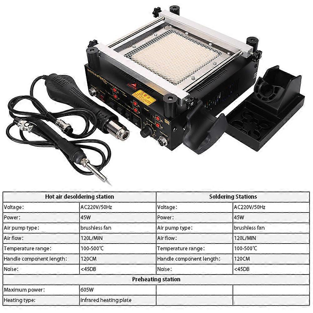 Gordak-3-in-1 Welding Tools Bga Hot Air Gun Infrared Ir Soldering Iron Pre-heater Preheating Station 863 220v