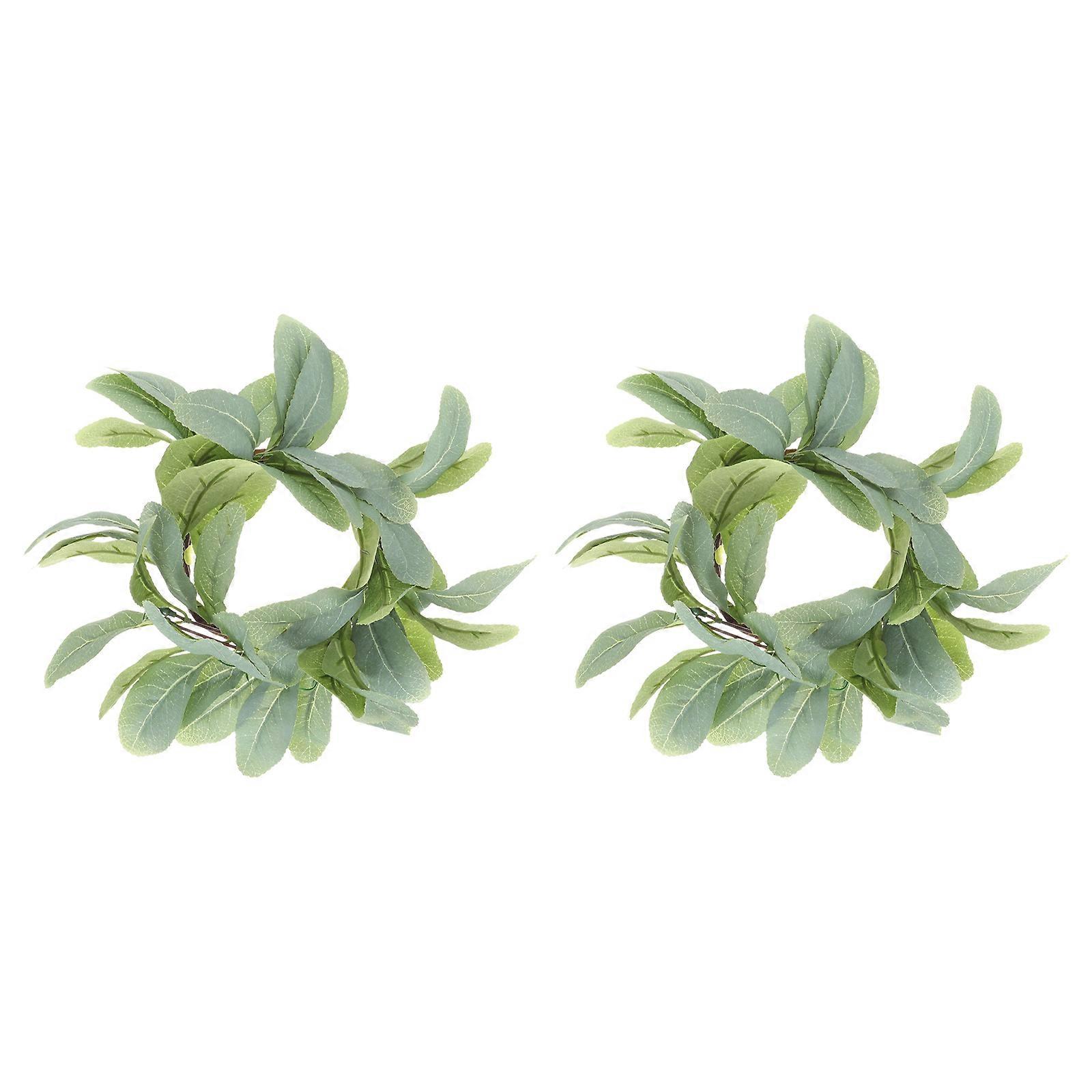 Green Simulation Wreath Candle for Decor 2Pcs Artificial Leaf Wreath