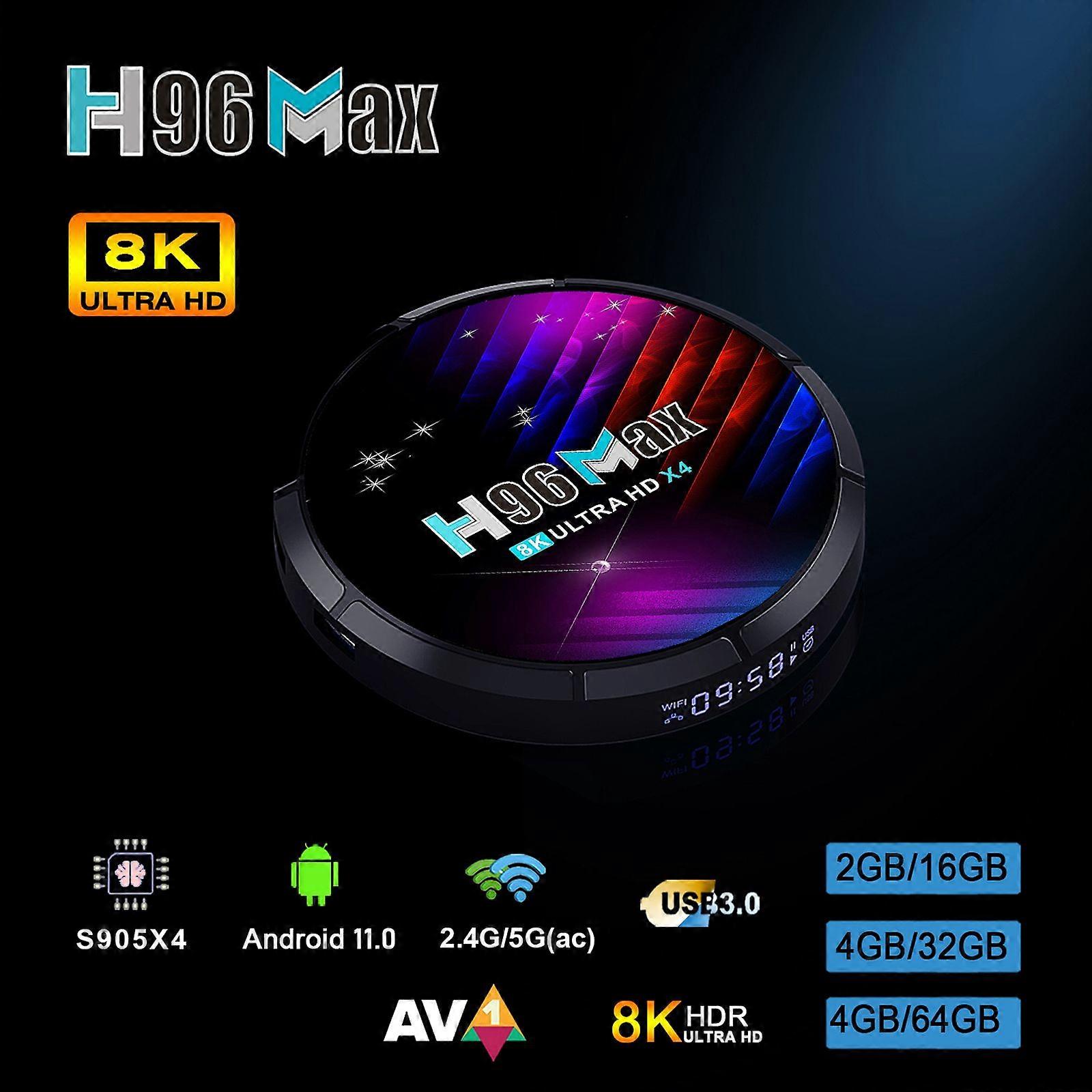 H96 Max X4 Android 11.0 Smart TV Box UHD 4K Media Player Amlogic S905X4 2.4G/5G WiFi AV1 H.265 VP9 Decoding with Remote Control