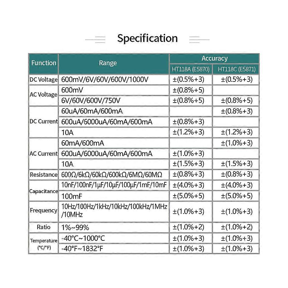 HABOTEST HT118C Digital Multimeter Manual Range Multi-meter 6000 Counts True RMS Measuring AC/DC Voltage Current Resistance Capacitance Frequency