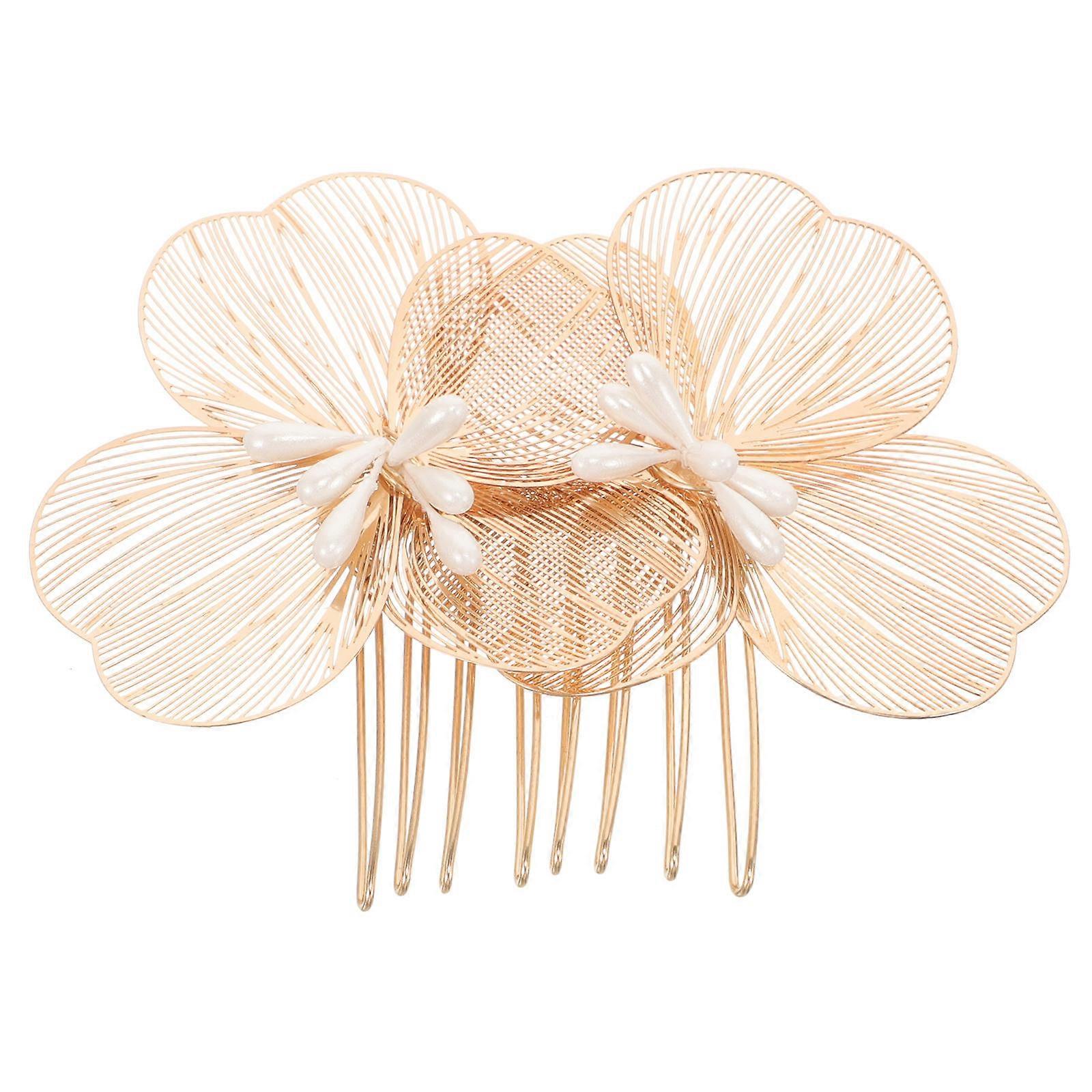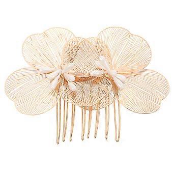 Hair Side Comb Adorned With Simulation Flowers For Elegant Bridal Look In Light Yellow Color 1 Pcs