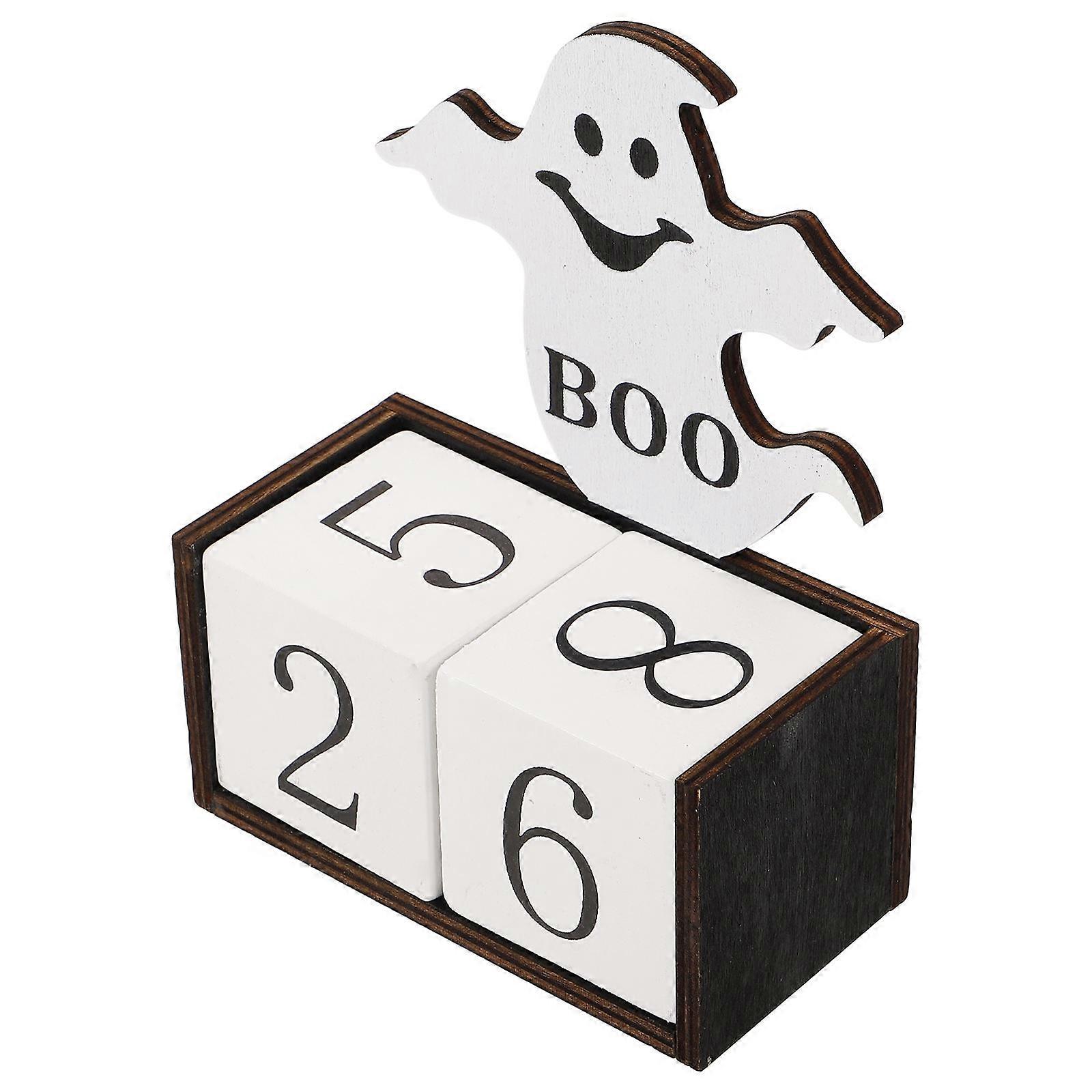 Halloween Themed Rustic Wooden Desk Calendar Reusable Month Date Display Compact for Office Home Decor