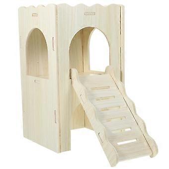 Hamster Hideout Wooden House for Guinea Pig Hideaway with Ladder