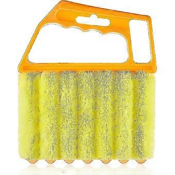 Handheld Blind Cleaner Duster - 7-Finger Dusting Tool for Windows & AC with Washable Mini Brush in Yellow - Easy Dust Removal