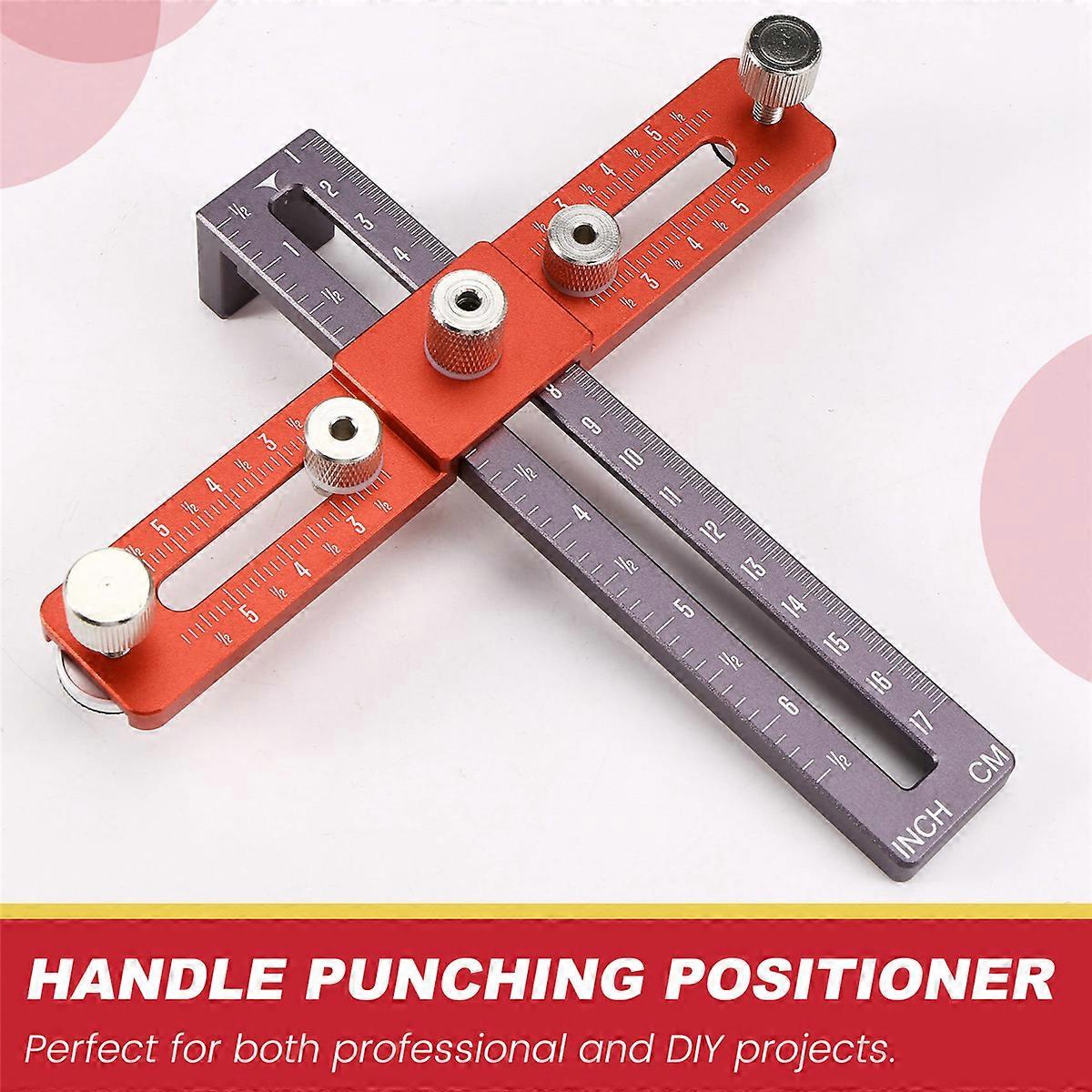 Product name: Drawer handle punch Standard: Tool set Scope of application: cabinet handle punch positioning Application scenario: Cabinet, handle hole positioning Colour:Orange + Gray Material:Aluminum Alloy Package Contents: 1 * handle punching positioner Only the above package content, other products are not included. Note: Light reflection and different displays may cause the color of the item in the picture a little different from the real thing. The measurement allowed error is +/- 1-3cm.