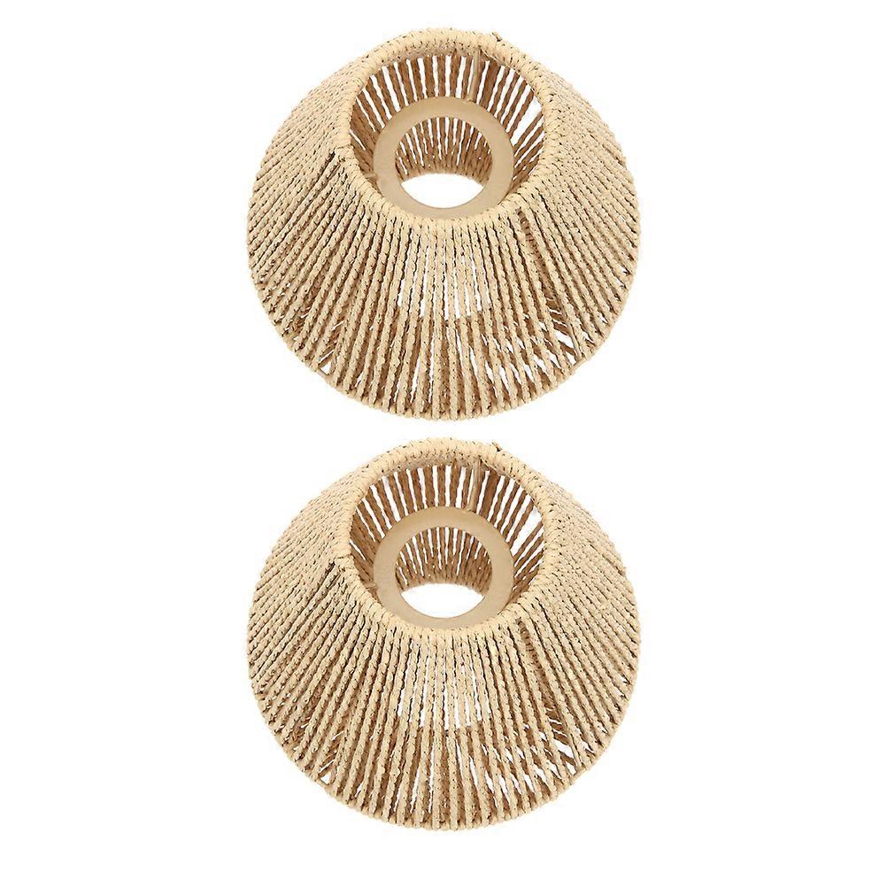 Handwoven Boho Lamp Shade for Table Lamp 2Pcs Rustic Khaki Shades