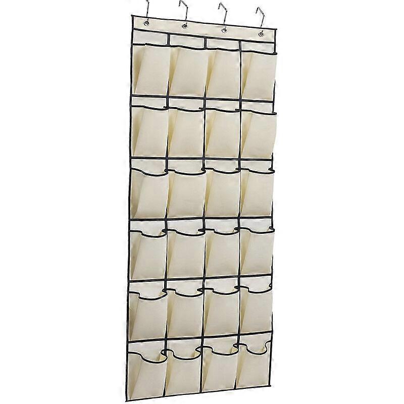 Hanging shoe storage 24 pockets on door Space saving shoe storage shoe cabinet with 4 hooks beige
