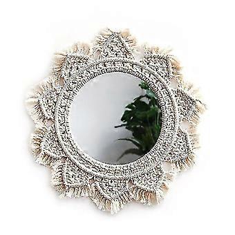 Hanging Wall Mirror With Macrame Fringe Round Mirror Art Boho Decor