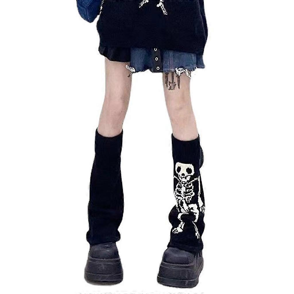 Harajuku Women Japanese Gothic Heart Skeleton Knit Leg Warmers Knee High Socks