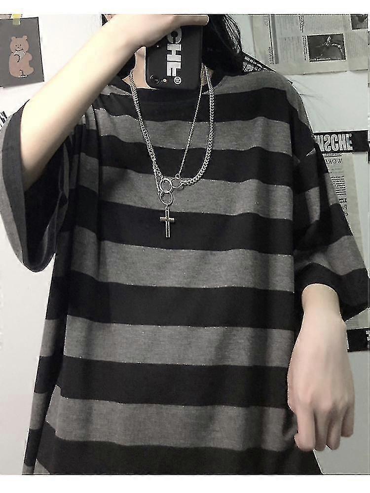 Harajuku Striped Shirts Women Short Sleeve Oversized Shirt Streetwear Gothic T Shirt Couple Tops Summer Striped Blouse