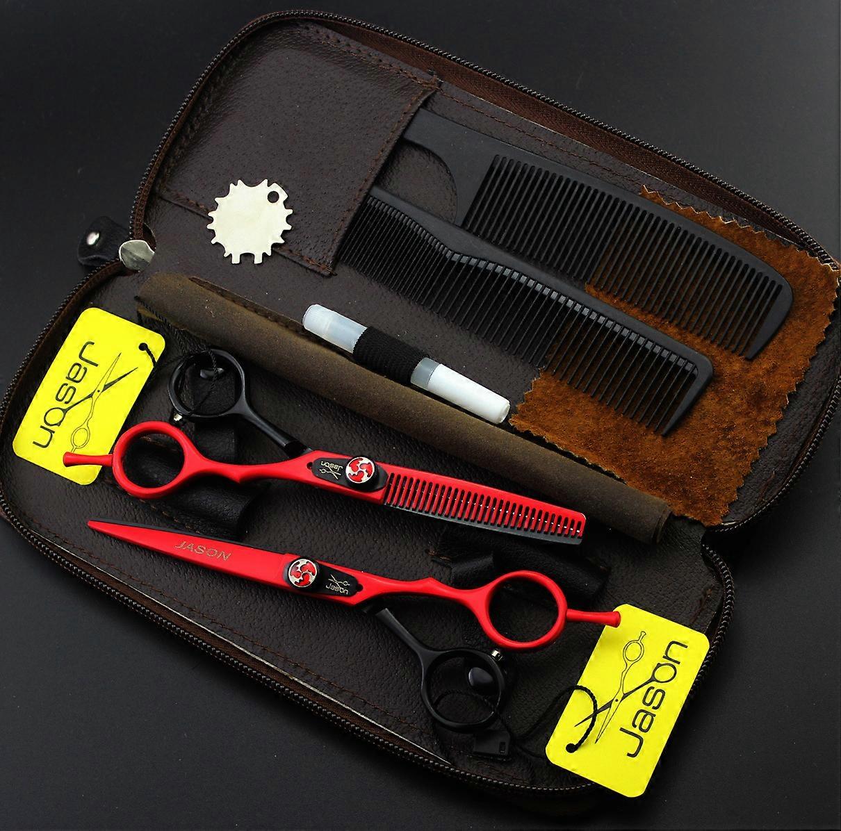 Hd-03 Black And Red Baking Paint Hair Sears Flat Scissors Thin Scissors Set