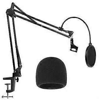 حامل ميكروفون شديد التحمل مع زجاج أمامي للميكروفون وفلتر ميكروفون مزدوج الطبقات ، مقص ذراع تعليق ميكروفون قابل للتعديل مع ميكروفون مثبت