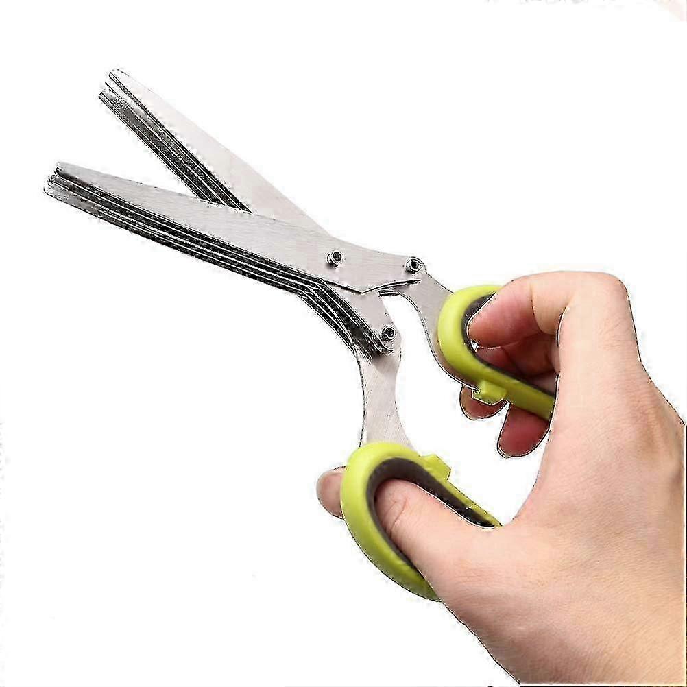 Herb Scissors, 5-Blade Sharp Scissors for Chopping Herbs Suitable for Chives Cive Onion Garlic Vanilla with Cleaning Comb (1 Pack, Green),2024 Pi