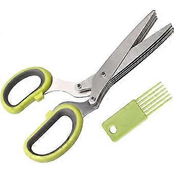 Herb Scissors, 5-blade Sharp Scissors For Chopping Herbs Suitable For Chives Cive Onion Garlic Vanilla With Cleaning Comb (1 Pack, Green),2024 Ping