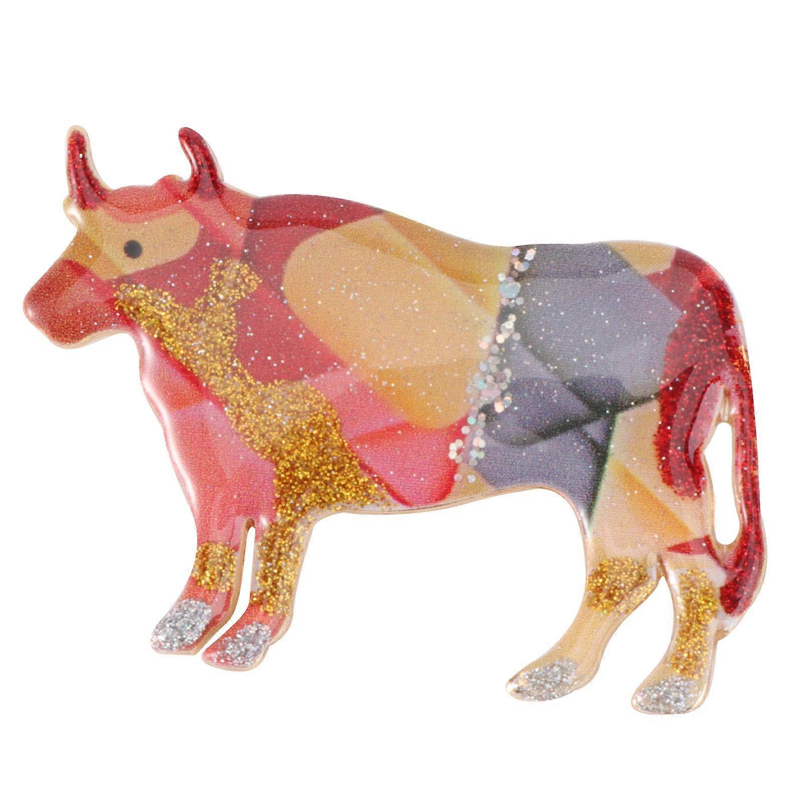 Here's a polished product description based on your input: **Creative Ox Brooch with Oil Drop Effect – Alloy Animal Pin for Clothing Decoration**