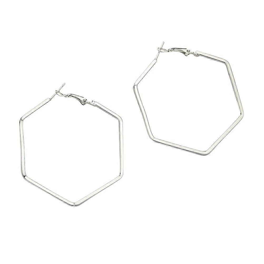 Hexagonal Earring Simple Ear Stud for 2Pcs Silver Creative Design