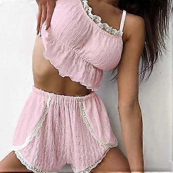 hirigin Lace Patchwork Women'S Pajamas Sets Hollow Out Crop Top Sleepwear Sexy Spaghetti Strap Nightwear Shorts Nightie Suits1